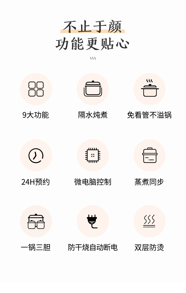 煮粥、煲汤、蒸、炖、米饭