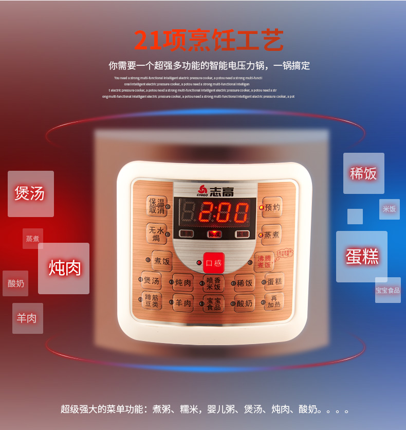 Chigo/志高 HY-50D电压力锅双胆5L 智能高压锅 多功能饭煲
