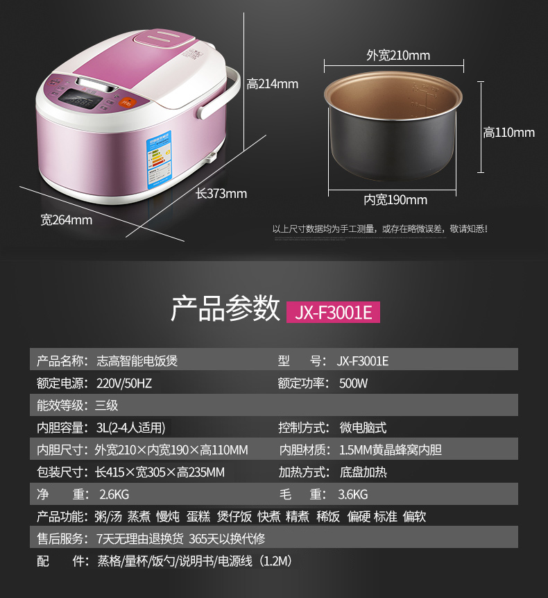 Chigo/志高 JX-F3001E电饭煲方煲 1人-2人 3人-4人家用迷你智能电饭锅3L