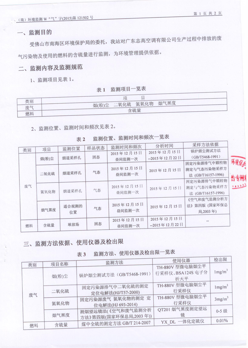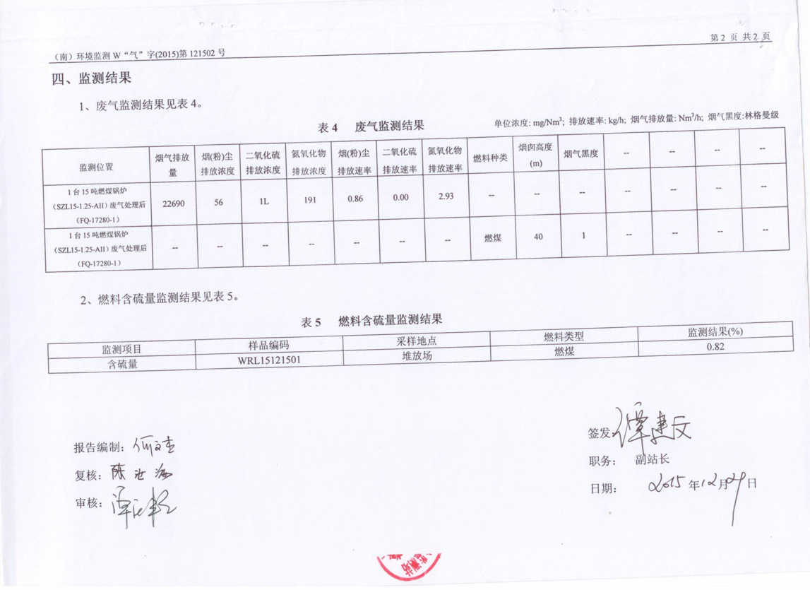 安全环保资料公布-废气监测报告-第4季度